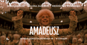 Zaprezentujemy porywającą historię muzycznego geniusza Mozarta (Tom Hulce) i jego zazdrosnego przeciwnika Salieriego (F. Murray Abraham). To nagrodzony 8 Oscarami wielki spektakl Formana oraz jeden z najlepszych filmów kostiumowych w historii kina. W scenerii XVIII-wiecznego Wiednia rozegra się pełen pasji, gniewu i uniesień pojedynek między dwoma bohaterami, których dzieli prawie wszystko – poza miłością do pięknej muzyki. Epickie kino, wybitna ścieżka dźwiękowa, oszałamiająca opera, humor i trzymający w napięciu dramat: „Amadeusz” to widowisko na wszystkie czasy – i widowisko wszech czasów.